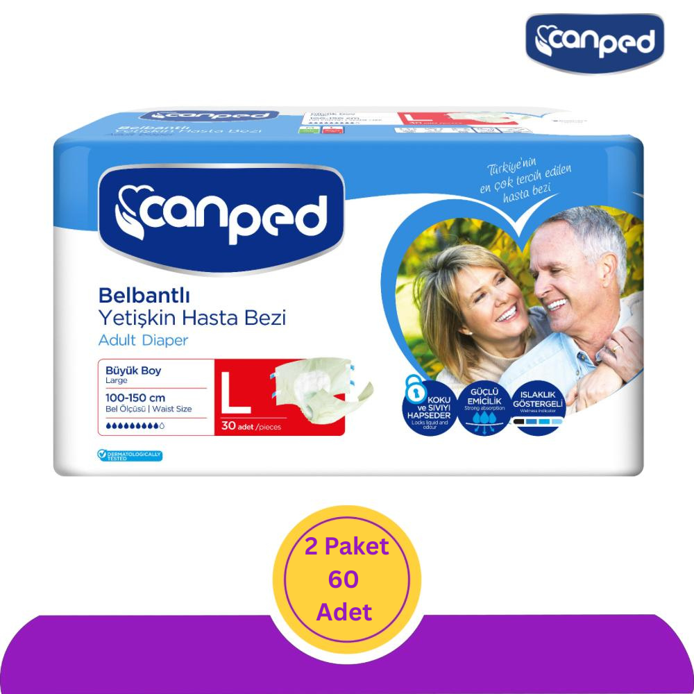 Canped Belbantlı Polietilen Yetişkin Hasta Bezi Büyük (L) - 60 Adet (2x30)